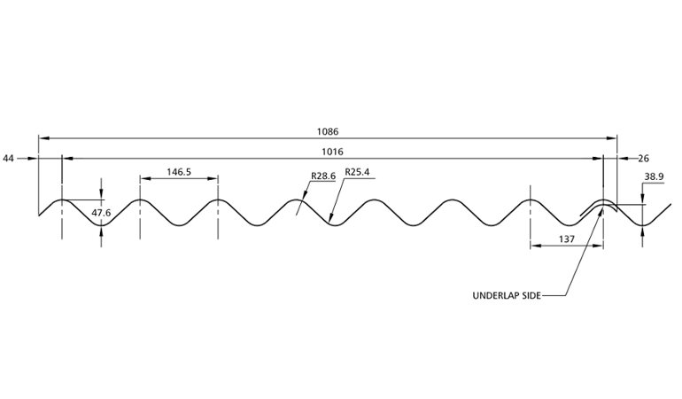 External Face: | 33/1000, 32/1000, 19/1000, 26/1000, 13/3 corrugated & the Big 6 |
