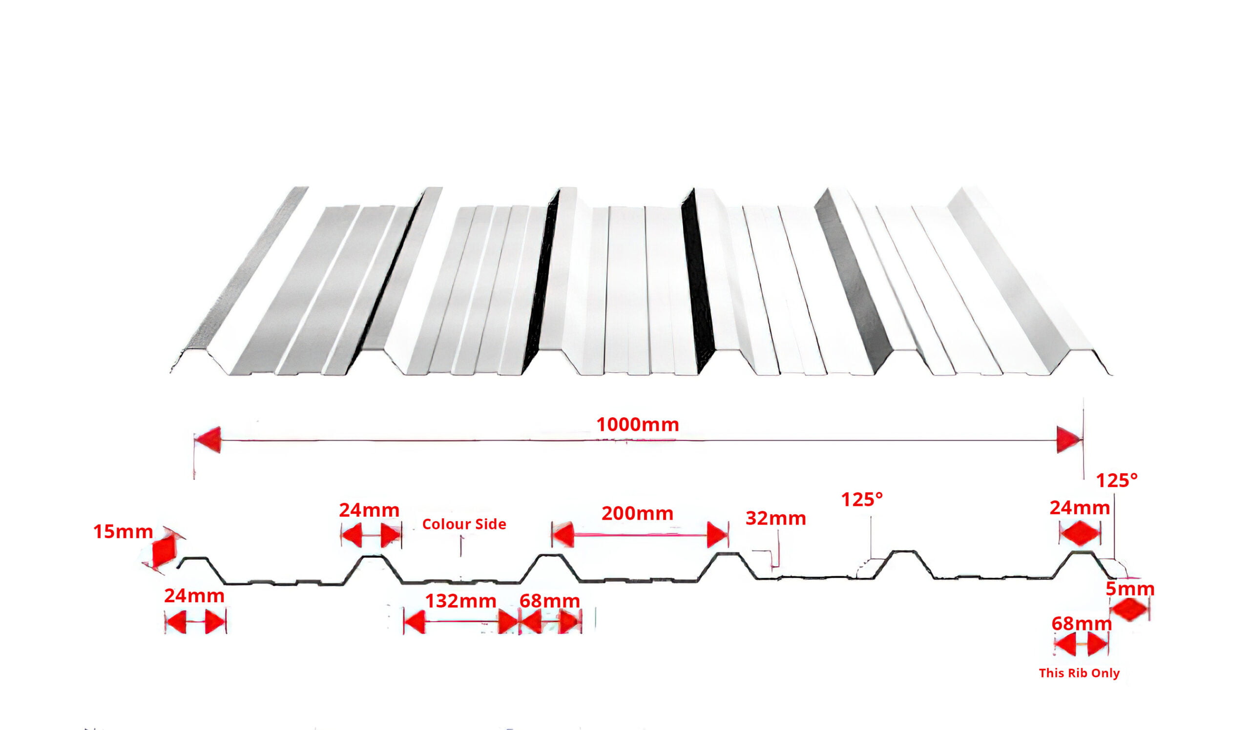 - Designed to interlock with Phoenix Steels’ steel roofing sheets, ensuring a watertight and aesthetically cohesive roof system. For example, the 32/1000 GRP profile matches the Box Profile 32/1000 sheet, with a 132mm trough and two 25mm ribs.